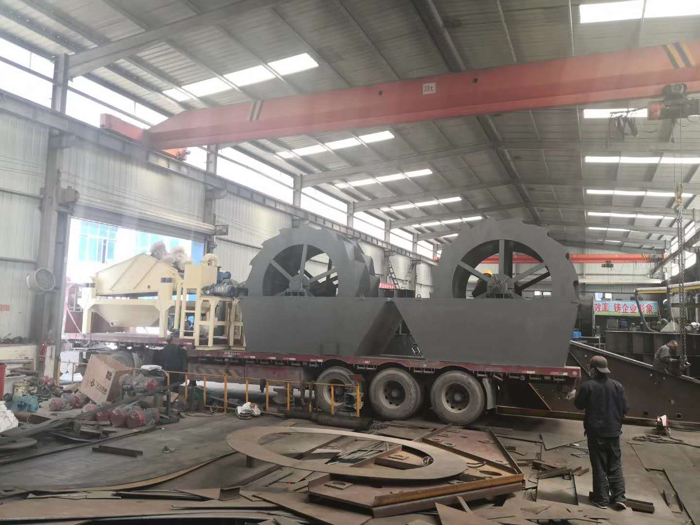 發(fā)往新高耐的3016輪式洗砂機和1530脫水細砂回收一體機
